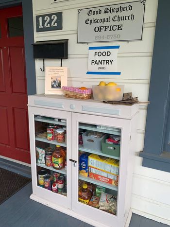 herd has a "Little Free Food Pantry" on the porch of the Vicarage. The food cupboard is stocked with non-perishable food items and personal hygiene items. We sometimes have pet food as well. Everything is accessible to the community 24/7. This pantry provides emergency food to those in need at times when there isn't a food pantry open. Inventory changes frequently and the community is invited to stock the shelves with non-perishable and non-expired items.